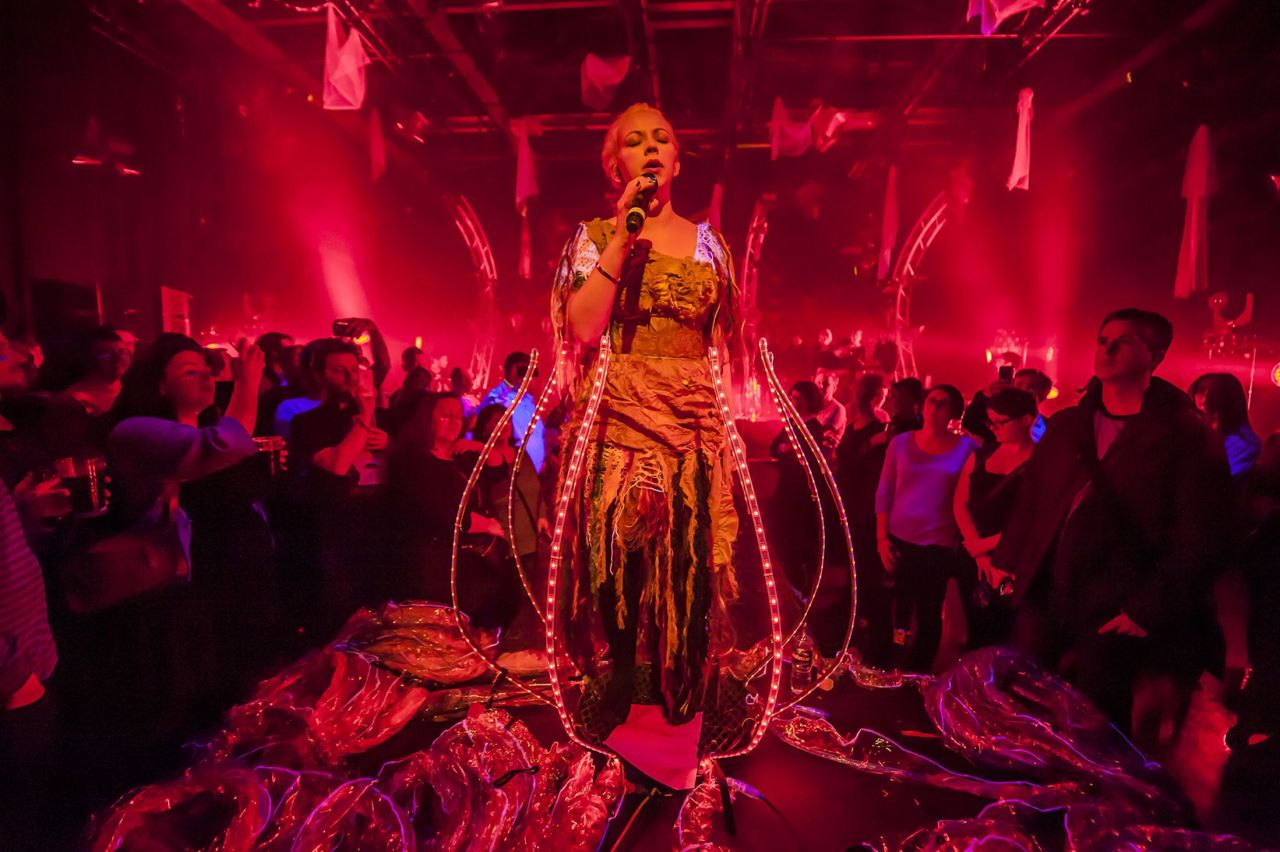 Costume and ‘wearable prop’ Design, taken from conception through to construction and operation on tour, at Riverside Studios Hammersmith and Enfys Studios Cardiff as part of the EP FOUR launch. Recorded by BBC Wales for transmission July 2014 as part of an evening of shows including a documentary about the tour. The live show can be viewed here.
